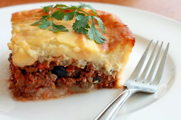 Мусака – традиційне листкове блюдо з баклажанів з м'ясним фаршем (найчастіше з баранини), томатами та соусом бешамель.