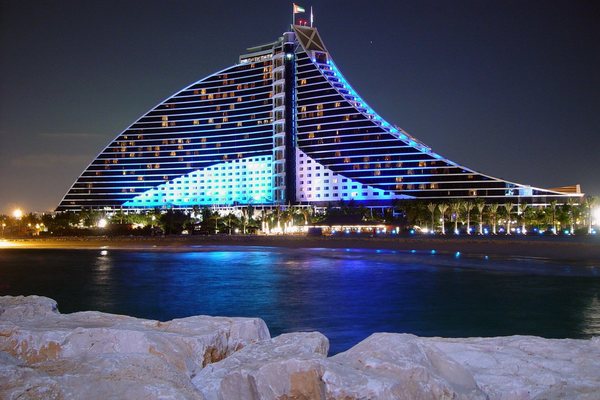 Burj Al Arab 5* – один із найзнаменитіших готелів світу, який, до того ж, входить до п'ятірки найвищих готелів. Легендарний готель-вітрило знаходиться на штучному острові в Перській затоці за 280 метрів від берега. У кожному з 202 дворівневих номерів на гостей чекає неймовірний комфорт. У готелі є 6 ресторанів і 2 бари, серед яких, наприклад, ресторан-акваріум. Крім цього, готель має басейни, бізнес-центр, амфітеатр, безліч розваг як для дорослих, так і для дітей. Гості готелю можуть безкоштовно відвідувати аквапарк Wild Wadi. Словом, якщо Ви бажаєте провести незабутній відпочинок у Дубаї, то Burj Al Arab – готель, який подарує море приємних вражень.
