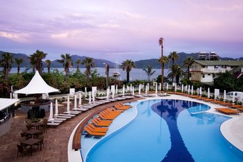 Цей чудовий 5-зірковий готель класу люкс розташований в межах Мармарису і має чудове обслуговування. Він має сонячну компактну територію, проте на ній можуть комфортно розміститися всі відпочиваючі. Відвідувачам пропонується відпочинок біля великого басейну, водні гірки, чудова анімація. Дозвілля дітей організовують аніматори у міні-клубі, є дитячий майданчик. Власний піщано-гальковий пляж готелю має плавний захід у море. Ресторан дивує гостей багатим смачним харчуванням з великою кількістю свіжих овочів і фруктів, зелені, м'ясних страв, а діти зрадіють морозиву, яке доступне протягом усього дня. Три ресторани a la carte пропонують рибні, італійські та мексиканські страви. Оскільки готель знаходиться у місті, найтихіші номери – з видом на море.