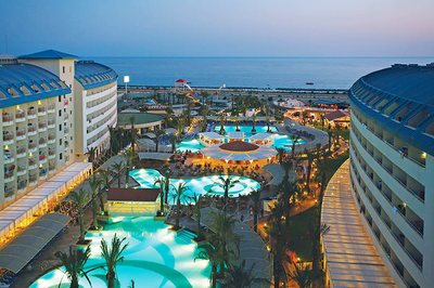 Розкішний п'ятизірковий готель Club Hotel Turan Prince World, що відкрився в 1993 році, більше схожий на великий комплекс, з унікальним аквапарком та лунапарком, діє за системою "Все включено". Готель знаходиться в найпрекраснішому місті країни, в Анталії, за 75 км від аеропорту Анталії, за 15 км від стародавнього міста Сіде і за 12 км від Манавгата.