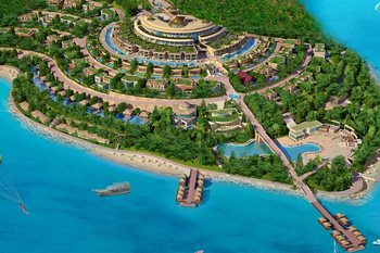 Amara Island Bodrum Elite 5* – на березі моря, за 3 км від селища Гюверджинлік. Аквапарк, кілька басейнів, безліч дитячих розваг, анімація, спортивні заняття, SPA-центр, власний піщаний пляж.