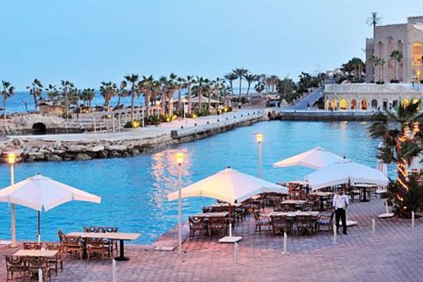 Територія Оцінка: 5 Територія готелю дуже велика і красива, на ній розташовано безліч барів, ресторанів. Готель розташований одразу біля моря та його будівлі виконані у розкішних коралових архітектурних формах. Безліч сходів ведуть з території до моря. Витончений дизайн готелю, природно, вписується в кам'янистий прибережний ландшафт і доповнений численними пальмами. Готель справляє враження красивої фортечної будови, що розташувалася біля берегів Червоного моря. Готель являє собою комплекс одно-, двох- та триповерхових корпусів. Готель власник власного рифу та власного причалу. Готель має дві лагуни. У лагуни меншого розміру безперервна діяльність. Постійна музика. Друга лагуна – це спокійний район, до якого заходять катери.