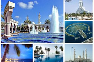 Дубай – це не лише всесвітньо відомий пляжний курорт, а й великий мегаполіс. Це місто виросло в пустелі, і більшість визначних пам'яток штучно створені руками людини. Тут відпочивають заможні шейхи у розкішних готелях. Найдорожчі готелі знаходяться в районі Джумейра. Головною пам'яткою якого є знаменитий готель «Вітрило» - Burj Al Arab. ОАЕ є ще й центром бізнес-туризму. Щороку сюди приїжджають мільйони бізнесменів. Нижче наведемо кілька відомих пам'яток, які можна переглянути в Дубаях.