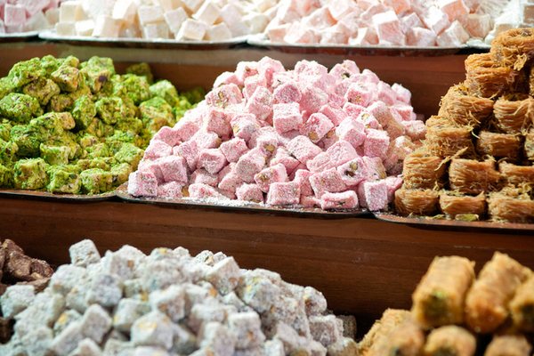 Турецькі солодощі – класичні сувеніри із Туреччини. На ринках можна знайти широкий асортимент пахлави, халви, щербету та знаменитого рахат-лукуму. Якщо Ви купуєте багато солодощів відразу – обов'язково торгуйтесь. Рахат-лукум найкраще купувати на вагу у спеціалізованих магазинах. Він буде дорожчим за той, який продається вже упакованим, але в рази смачнішим.
