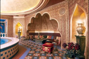 Відмінною частиною хаммама є приміщення зі стелею у вигляді бані. Ця конструкція лазні з куполоподібною стелею створена спеціально для того, щоб вона постійно була наповнена водяною гарячою парою. Хамам викладають декоративним мармуром, а вздовж стін розташовуються мармурові лави. Під час процедури відвідувачі сідають на ці лави, на їх кінці спеціально встановлюється бак з водою, звідки відвідувачі черпають воду і обливаються нею під час прийняття хамам. А мармуровий стіл, який розміщують у центрі банного приміщення, використовують для масажу, який добре розігріває тіло перед процедурою.