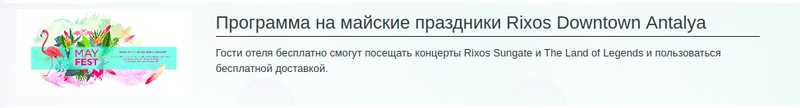 Пропонуємо Вам тури на травневі свята до популярних турецьких готелів з розважальною програмою. Вартість вказана за тур тривалість від 6 ночей, харчування – Ультра все включено, за 1 особу при проживанні у двомісному номері. Виліт із Києва.