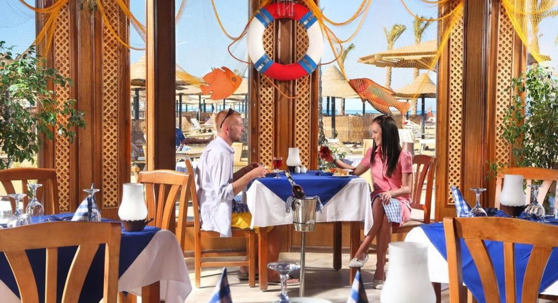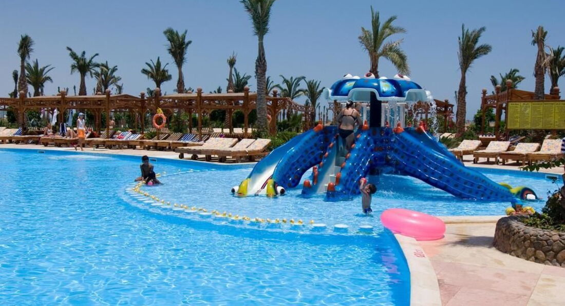Этот отель поразил своим качеством обслуживания и сервиса. В Египте отдыхаем каждый год, отель привлек своим местоположением, ценой и новизной. Приехав в него, сразу почувствовали дружелюбную, домашнюю атмосферу. Номер у нас был стандартный на 5 этаже с видом на море. Чистота и комфорт поразил, в номере было все для классного отдыха: большая двухспальная кровать, шкаф, сейф, столик с чайными принадлежностями, душ, фен. В первый же вечер, мы поняли, что качество питания в этом отеле лучше, чем в других посещаемых нами отелях. Довольно часто на завтрак предлагался окорок, бастурма вяленая, это не считая каш, йогуртов, омлетов, блинов, сосисок и сыров всевозможных. Территория и пляж: основную часть территории занимают бассейны и аква парк , это практически водная акватория, для взрослых и детей. Лежаков много везде. Пляж отличный! На пляже много лежаков, было немного ветрено, для этого есть заграждения. Все работало и пляжный кафе - бар, в котором повар бесподобно готовит рыбное филе в кляре, пиццу, картофель фри, гамбургеры и шаурму, все очень вкусно. Мороженое на пляже превосходного качества. Кстати, на пляже есть катамараны и каноэ бесплатно. Для любителей спорта в отеле есть тренажерный зал. Вечерами в нашем отеле проводились детские дискотеки, далее следовали вечерние шоу аниматоров или приглашенных артистов. Меня поразило отношение всего персонала, очень дружелюбное, даже слишком. Хочу отметить необыкновенную чистоту и порядок везде, может новый отель, а может вообще есть в Египте такие отели и это один из немногих.