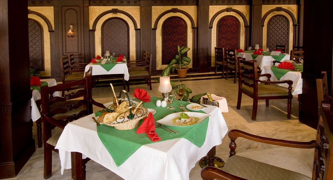 По приезду в паспорта положили по 10 $, для того чтобы нас с подругами разместили рядом. Нас сразу отправили на обед, но заселили через 1,5 часа, и то после того как я с ними поскандалила. Но я не ставлю это минусом, просто если бы мы были не такие уставшие, я молча бы дождалась сама. Заселили в хороший номер 2216 с видом на басейн, близко к выходу и ресторану. В номере чисто, уютно, мебель очень даже не старая, сейф работал (у кого не работал, просто не умеют с ним обращаться). Единственное ванна плохо стекала, но нас совсем не напрягало. Убрали в номере за это время 2 раза, чаще мы не просили,муж частенько отдыхал, и сам просил не убирать. Один раз положили 1 доллар и шокаладку, никаких лебедей нам не накрутили, больше не давали чаевых. Нужно как-то самим следить за чистотой и тогда не будет претензий к персоналу. Полотенца были белые чистые, меняли 3 раза, чаще нам не нужно было, на пол мы их не бросали, тогда зачем менять чаще. Пляж неочень, но нам было все равно, мы приехали загорать. Лежали в основном на ступеньках у воды, загар отменный получился. На пирс соседнего отеля ходили по воде, никто не выгнал. У басейна в баре все нас устраивало, наливали постоянно. Там есть бармен Ибрагим, с виду злюка, но мы дали ему доллар, так он нам такие коктейли шоколадные делал - закачаешься. Вы только представьте у него зарплата 120 долларов (как и у все впринципе), а за квартиру ему платить нужно 150. Хороший бармен Фахим. Да они все там хороший, все вежливые, улыбаются всегда. Такие трудяги когда они только спят. Еда вообще супер, дляменя очень-очень разнообразно, нажирались чуть ли не до потери пульса. Фруктов малавато, но это не так уж важно, зато остального завались. Вечером жарят на улице птицу на гриле, рыбу вкуснейшую, пиццу пекут, давали даже креветки с крабами. Мяса достаточно. Я не думаю что, те кому что-то в еде не понравилось, дома выготавливает так. Еще раз повторюсь ЕДЫ ВАЛОМ, мой муж за неделю набрал 7 кг. Я большая привереда в еде, но мне нравилось все, даже многое не попробывала, т.к. хочеться всего, наложишь, а съесть не можешь. Пирожных очень много, все вкусное, часто давали тортики и пиродки по вкусу типа КАРТОШКИ шоколадной. Утром куча круасанов, я их не очень люблю и не ела, а в последний день как попробывала, нежнейшие. Крем супы вкусные были. Очень понравился желтый рис. Возле ресепшена в баре делают очень вкусные молочные коктейли, но мало кто об это знает. Персонал хорошо общается на русском, т.к. 80% русских.