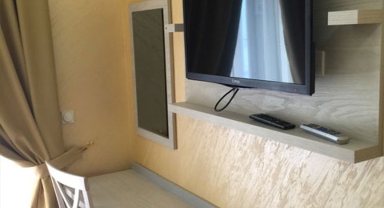 • кухня: плитка, мийка, посуд, холодильник (в апартаментах);
