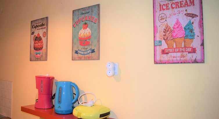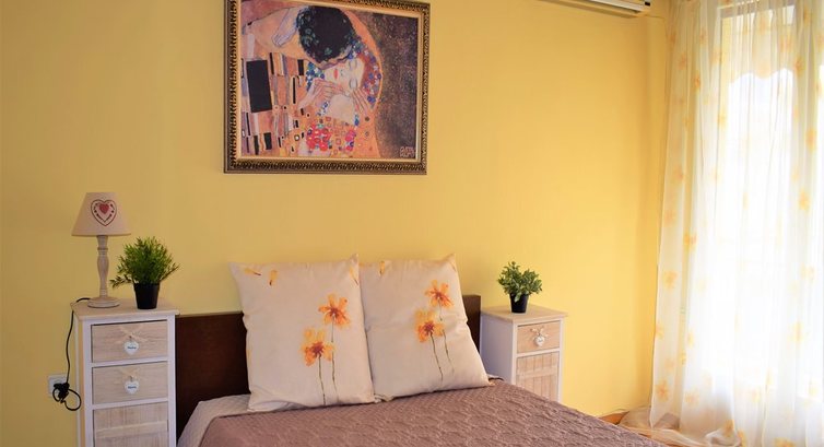 Типи номерів: Квартира знаходиться на підвальному поверсі і має 1 спальню. На 1 поверсі розташована 1 спальня. Кімната 1: двоспальне ліжко, кондиціонер, балкон.Територія та послуги: Бойлер Меблі Ліфт A/C Чайник Фен Wifi Електрична праска Прасувальна дошка Кавоварка Постільна білизна, рушники Шампунь Вішалки