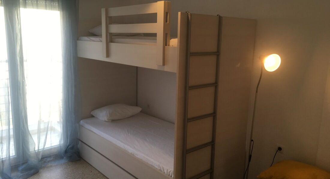Типи номерів: Квартира знаходиться на підвальному поверсі і має 2 спальні. На 1 поверсі розташовані 2 спальні. Кімната 1: двоспальне ліжко, кондиціонер, телевізор, балкон. Кімната 2: 3 односпальні ліжка, кондиціонер, балкон.Територія та послуги: Стоянка Бойлер Меблі A/C Чайник Фен Wifi Електрична праска Прасувальна дошка Кавоварка Постільна білизна, рушники Шампунь Пральна машина Вішалки Вогнегасник Аптечка