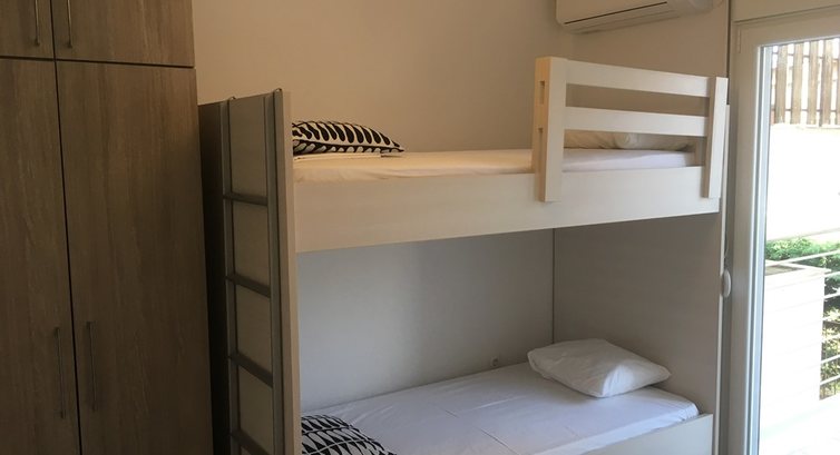Типи номерів: Квартира знаходиться на підвальному поверсі і має 2 спальні. На 1 поверсі розташовано 2 спальні. Кімната 1: двоспальне ліжко, кондиціонер, телевізор, балкон. Кімната 2: 3 односпальні ліжка, кондиціонер, балкон.Територія та послуги: Стоянка Бойлер Меблі A/C Чайник Фен Wifi Електрична праска Прасувальна дошка Кавоварка Постільна білизна, рушники Шампунь Пральна машина Вішалки Вогнегасник Аптечка