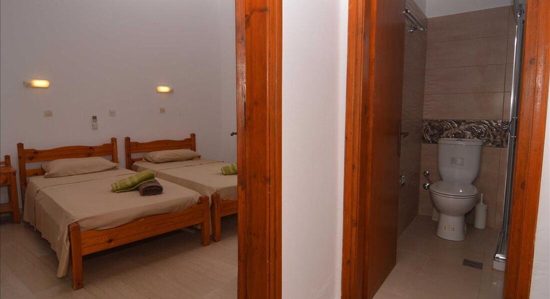 Типи номерів: Квартира знаходиться на підвальному поверсі і має 2 спальні. На 1 поверсі розташовані 2 спальні. Кімната 1: 2 односпальні ліжка, кондиціонер. Кімната 2: 2 односпальні ліжка, кондиціонер.Територія та послуги: Бойлер Меблі A/C Чайник Фен Wifi Електрична праска Прасувальна дошка Шампунь Дозволяється проживання з домашніми тваринами Пральна машина