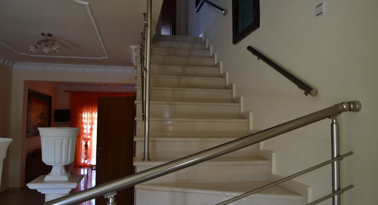 Типи номерів: На 2 поверсі розташовані 2 спальні. Кімната 1: двоспальне ліжко, кондиціонер, балкон. Кімната 2: двоспальне ліжко, кондиціонер, балкон, ванна кімната.Територія та послуги: Стоянка Барбекю Бойлер Меблі Камін A/C Супутникові ресивери Чайник Фен Wifi Електрична праска Прасувальна дошка Кавоварка Шампунь Пральна машина Вішалки Вогнегасник Аптечка