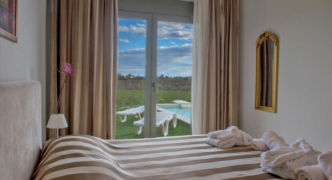 Типи номерів: На 1 поверсі розташовано 2 спальні. Кімната 1: двоспальне ліжко, телевізор, балкон. Кімната 2: 2 односпальні ліжка, телевізор, душова кабіна-wc.Територія та послуги: Стоянка Барбекю Сигналізація Бойлер Меблі A/C Супутникові ресивери Чайник Фен Wifi Електрична праска Прасувальна дошка Кавоварка Постільна білизна, рушники Шампунь Пральна машина Вішалки Вогнегасник Аптечка