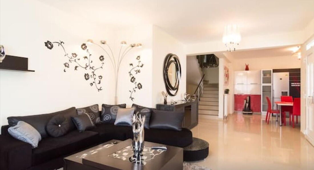 Депозит 1000 євро. Типи номерів: На 2 поверсі розташовано 3 спальні. Кімната 1: двоспальне ліжко, кондиціонер, телевізор, балкон. Кімната 2: двоспальне ліжко, кондиціонер, телевізор, балкон. Кімната 3: двоспальне ліжко, кондиціонер, телевізор, балкон.Територія та послуги: Стоянка Барбекю Сигналізація Бойлер Меблі Камін A/C Склад Супутникові ресивери Чайник Фен Wifi Електрична праска Прасувальна дошка Кавоварка Постільна білизна, рушники Шампунь Пральна машина Вішалки