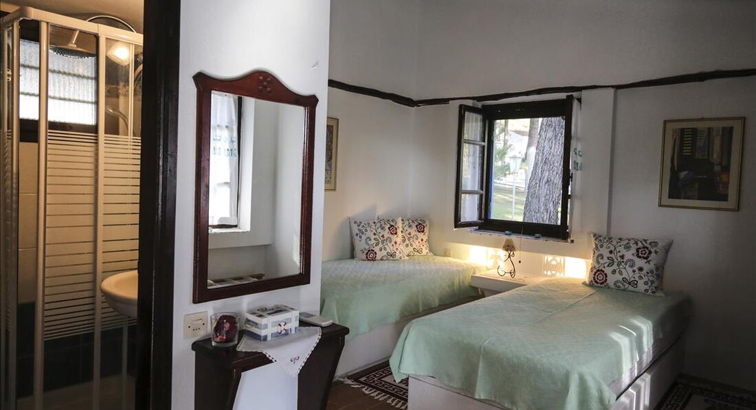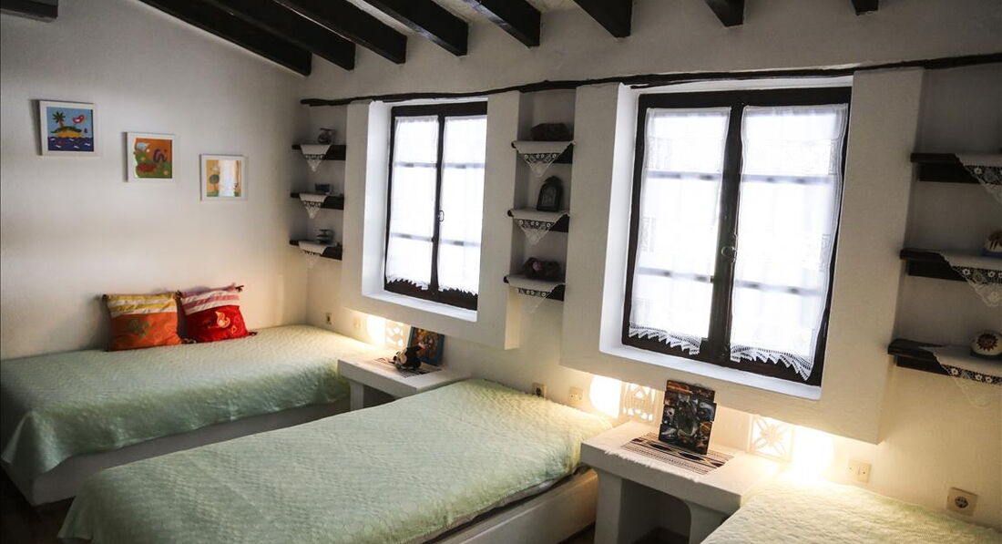 Депозит – 500 євро. Типи номерів: На 1 поверсі розташовано 3 спальні. Кімната 1: двоспальне ліжко, кондиціонер. Кімната 2: 3 односпальні ліжка, кондиціонер. Кімната 3: 2 односпальні ліжка, кондиціонер.Територія та послуги: Стоянка Бойлер Меблі Камін A/C Склад Чайник Фен Wifi Електрична праска Прасувальна дошка Кавоварка