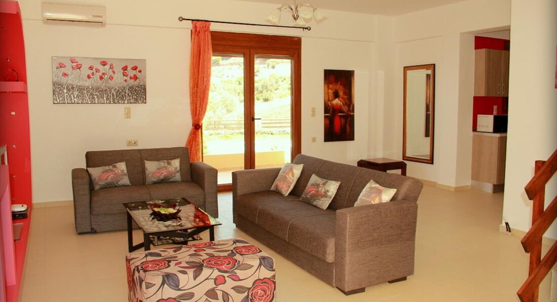 Типи номерів: На 2 поверсі розташовано 3 спальні. Кімната 1: двоспальне ліжко, кондиціонер. Кімната 2: двоспальне ліжко, кондиціонер, ванна кімната. Кімната 3: 2 односпальні ліжка, кондиціонер, балкон.Територія та послуги: Стоянка Барбекю Бойлер Меблі A/C Супутникові ресивери Чайник Фен Wifi Електрична праска Прасувальна дошка Кавоварка Постільна білизна, рушники Шампунь Куріння Пральна машина Вішалки Вогнегасник Аптечка