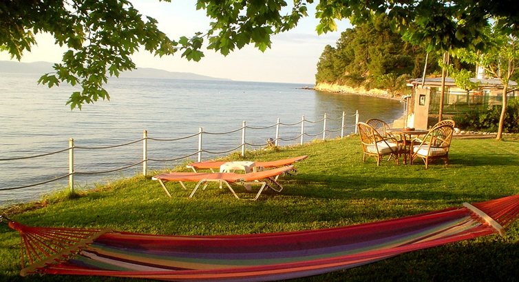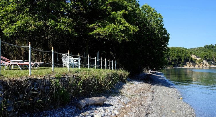 Пляж: Гальковий, кам'янистий пляж. Пляж нагороджений блакитним прапором за чистоту!