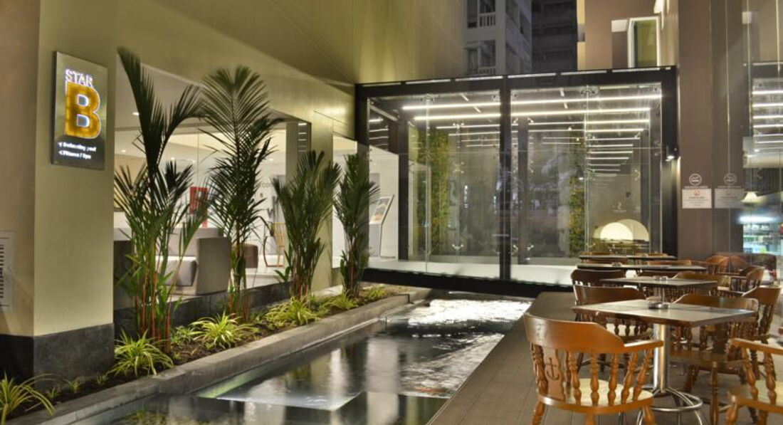 Начну с того,что я сам работаю Менеджером в отеле.Я отдыхал один в номере.Для одного он и то маловат.Балкона нет , зеркала нет(оно тонированное) , столика нет ,шкафа нет,одна тумбочка без ящиков ,на которой стоит телефон и больше почти ничего не положишь , да вообще ничего там нет кроме телевизора и двух бутылок воды (с запахом хлорки) и полотенец. Все вещи хранились где придется в основном просто валялись на чемодане. У кровати , чёрные шторы ,которые открыть нельзя ,т.к. напротив находятся другие номера и света как такового нет и жить там получается как в тёмном сыром склепе. Управление кондиционером находится встроенным у входной двери , пульта нет ,что очень не удобно ,стула там тоже нет ,не говоря уже о будуаре и т.п. Ночью спать просто невозможно ,персонал начинает уборку в 7 утра это просто ужас горничная пылесосит пол в коридоре каждый час ударяет им по всем дверям,постоянные хлопанья дверьми соседей и уборщиц(ужас) все всех слышно ,как будто находятся в твоём номере .В общем без бутылки вискаря или пару бутылок пива не уснуть.ТАМ много китайцев и индусов которые шумят громко и хлопают дверьми.Вещи негде сушить ,да и вообще они там не сохли из за влажности в номере. Под окном стоянка машин . Курить можно только на улице , где всего два стола и 4 стула на всех.И ЕЩЕ один большой минус что,этот отель разделен на 2 части.1я часть -в нем находится ресепшен и маленькие номера.Вторую часть(B)достроили в нем есть наш бассейн на 4 этаже 3*10 метров(всего 4 шезлонга) и номера поболее.Завтраки вообще находятся в соседнем отеле через дорогу(еда нормальная).Стойка информации находится в другом отеле(с таким же названием) через дорогу ,но уже в другом корпусе в которых пишут когда выезд и т.д(вообще ужас нельзя что ли в своем отеле писать информацию УЖАС).О том когда у меня выезд из отеля Я ТАК И НЕ УЗНАЛ. Я эту стойку информации нашел за несколько часов до отъезда ,но на ней меня не было.Отельного гида я своего так и не видел и моего времени вылета также не было там -пришлось заранее вставать и ждать 3 часа когда за мной приехали(ужас).