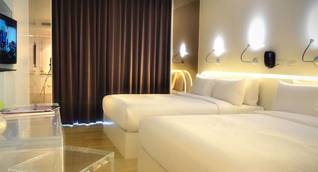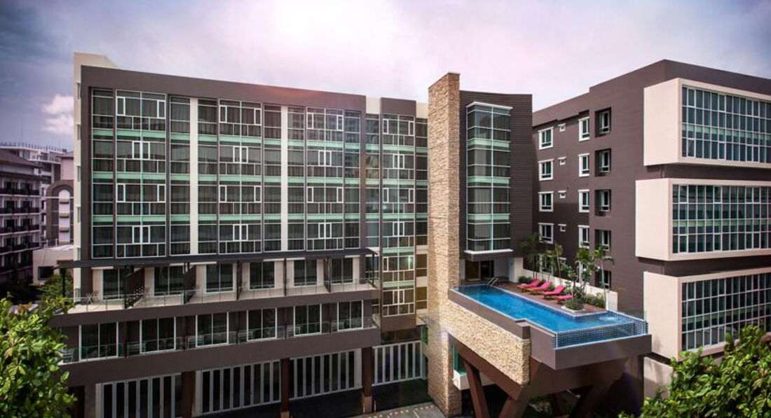 Компания Туи продала путёвку на 16 дней в этот отель , порекомендовав его как отличный и современный отель,хотя рассматривали отель на 10000р.дешевле с номером делюкс ,но нам сказали что этот отель новый современный и намного лучше . Нас привезли ,на ресепшене выдали электронную карту и всё . Дальше идите с своими чемоданами и ищите номер сами. От вайфая пароль тоже не хотели давать ,забили его в один телефон и типо для второго это уже платно. Зайдя в номер ужаснулись , какой он маленький . Балкона нет , зеркала нет , столика нет ,шкафа нет,одна тумбочка без ящиков ,на которой стоит телефон и больше почти ничего не положишь , да вообще ничего там нет кроме телевизора и двух бутылок воды (с запахом хлорки) и полотенец. Все вещи хранились на полу . В номере очень сыро ,т.к. раковина и душ находятся у вашей кровати,долго мыться нельзя ,т.к. из за забитого слива вода польётся к кровати , чёрные шторы ,которые открыть нельзя ,т.к. напротив находятся другие номера и света как такового нет и жить там получается как в тёмном сыром склепе. Управление кондиционером находится встроенным у входной двери , пульта нет ,что очень не удобно . Что бы повернуть направление воздухом ,сажал жену на плечи и вручную поворачивали металлические поворотные лепестки ,стула там тоже нет ,не говоря уже о будуаре и т.п. Ночью спать просто невозможно ,персонал и все кто отдыхает в баре на первом этаже ,как будто находятся в твоём номере . Мы не могли спать ни одну ночь нормально ,как будто дверей вообще нет . Приходилось даже выходить ночью из номера и просить что бы персонал заткнулся и дал нам спать . Купальники и плавки негде сушить ,да и вообще они там не сохли из за влажности в номере. Рядом с отелем идёт стройка , от которой много пыли и шума. Под окном стоянка машин . Курить можно только на улице , где всего два стола и 4 стула на все 140 с лишним номеров . В отель завозят толпы орущих китайцев. И прочие группы туристов для временного размещения . Русского говорящая Тайка из администрации отеля была удивленна что нас поселили сюда на 2 недели и наша тур фирма Туи не предпринимает никаких действий . Ну это уже отдельная тема . Собственного бассейна у отеля нет , приходилось ходить в другой корпус как чужим с улице . Напитки и еду свою приносить запрещено, если 0.5 воды в магазине стоит 7 бат ,то у бассейна она стоила 71 бат. В 17-00 бассейн закрывается . Проблема с свободными шезлонгами , с самого утра их все занимают кидая на них полотенца с одеждой и уходят . В общем это отель на 1-2 ночи и то в нём вряд ли получится выспаться , на дверях электронные замки , и они с таким грохотом шарахают просто ужас . Отдых был испорчен ,никому не советую ехать в этот корпус больше чем на одну ночь .
