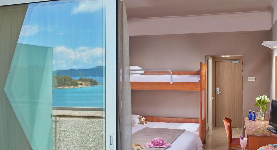 Готель розташований на лісистому півострові, з видом на море та острів Хініца, якому він і завдячує своєю назвою. Острівець діє як природний бар'єр від вітру, тим самим захищаючи приватний пляж готелю. Готель пропонує 216 номерів та сьютів, більшість з яких – з видом на море. Приватний піщаний пляж прямо перед готелем та захоплюючі краєвиди на море забезпечують ідеальну атмосферу для розслаблюючого відпочинку.
