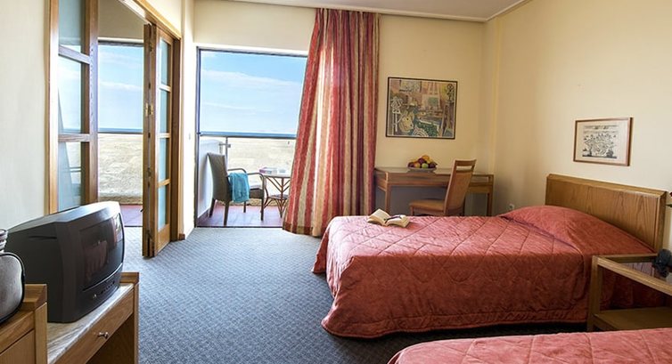 Готель AKS Minoa Palace знаходиться прямо на приватному пляжі, за 7 км від міста Іракліон. Комфортабельні номери з видом на Критське море або сад готелю обладнані балконом або терасою, кондиціонером, телевізором, холодильником, окремою ванною кімнатою з феном. У головному ресторані готелю з панорамним видом на Критське море подаються страви грецької та міжнародної кухні. Напої та закуски подається в бар на пляжі. До послуг гостей відкритий басейн та окремий басейн для дітей, сеанси масажу, хамам, тренажерний зал, дитячий майданчик та дитячий клуб. На всій території є безкоштовний Wi-Fi, а також приватна парковка.