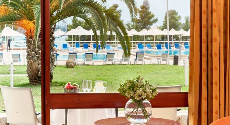 • ресторан Aiolos біля басейну, розташований на відкритій терасі, пропонує страви національної кухні.