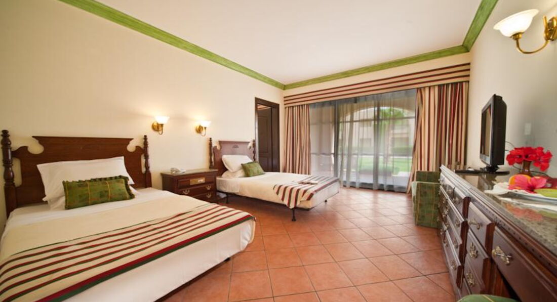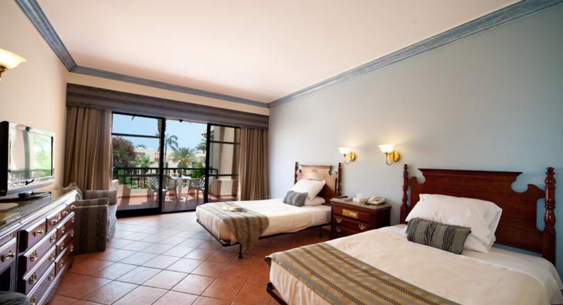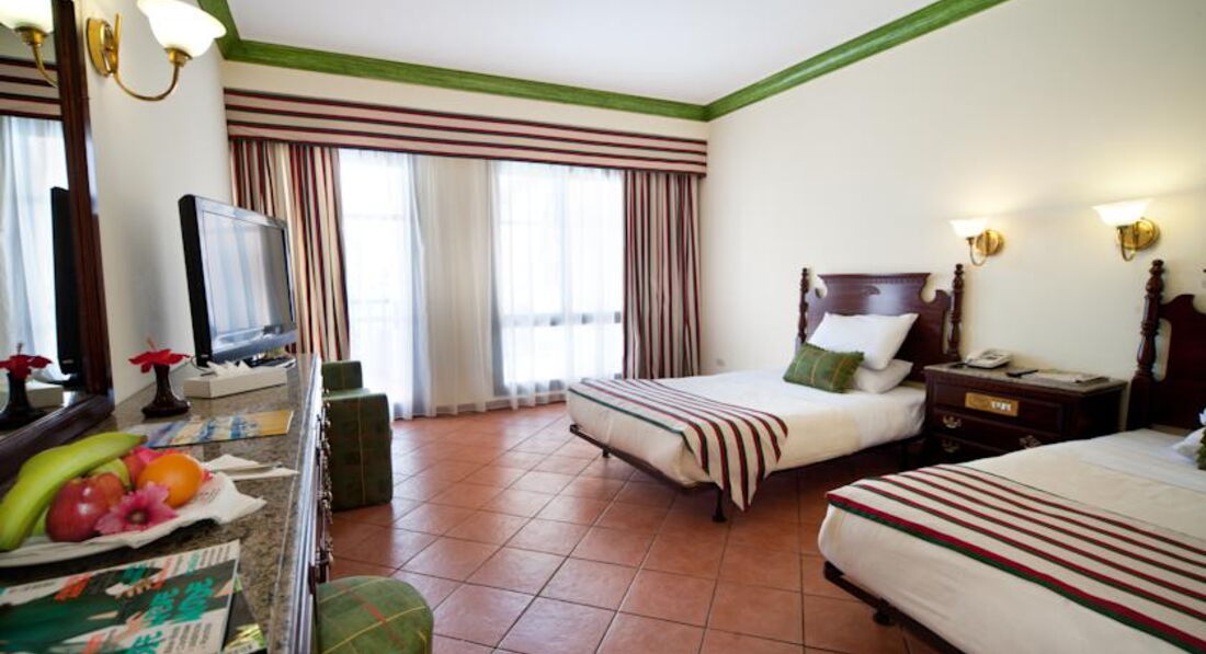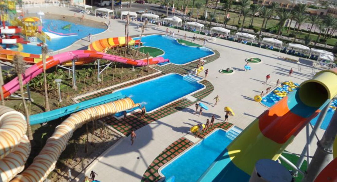 Поехали отдыхать всей семьёй в конце марта 2017. Во время заселили, всё было быстро, даже предлагали разные варианты, за это спасибо. Нам дали два номера это было заказано при покупки путёвки, так как один семейный стоит дороже, чем два рядом. Номера были одинаковые в отличие от некоторых нюансов, но самый нюанс это нет сейфа в номере, с видом на море, но море можно было видеть в дали через пальмы. Номера просторные, большие кровати, но старая мебель, которая чуть открывалась. Был холодильник, его постоянно пополняли питьевой водой. Кондиционер был, но как-то он непонятно работал, фен очень быстро перегревался и отключался. Убирали слабо, но каждый день. Территория отеля красивая. Кусты, цветы, пальмы, бассейны один бассейн был обогреваемый. Сама территория совмещена с другим отелем, в которых идут ремонтные работы. Еда в отеле однообразная, но голодными мы не остались. Хотелось бы завтракать на открытой террасе, но недостаток это курящие отдыхающие. В барах можно перекусить и выпить, так что еду найдете везде. Пляж хороший, но каменистый, море шикарное есть, недалеко от пирса кораллы там есть рыбки, за которыми можно понаблюдать. Мы хотели посмотреть еще на древний Египет, начитавшись о компании тур оператора, решили у них экскурсию не заказывать, цена в отеле на экскурсии оказалась высокая. Нашел в интернете экскурсии в Египет, познакомился с Мухаммедом Лучи, который и организовывал экскурсию в Луксор, был презент от его в качестве сим карты с местным номером и доступом к интернету, так как интернет в отеле платный и дорогой. Недорого, а программа такая, как и у отельного гида. Анимация в отеле была, спортивные на территории отеля возле бассейна и на пляже и вечерние мероприятия в здании отеля, но опять те самые курящие европейцы и мы как-то редко посещали эти мероприятия. Порадовал аквапарк, на территории которого были горки, как для взрослых, так и детей.