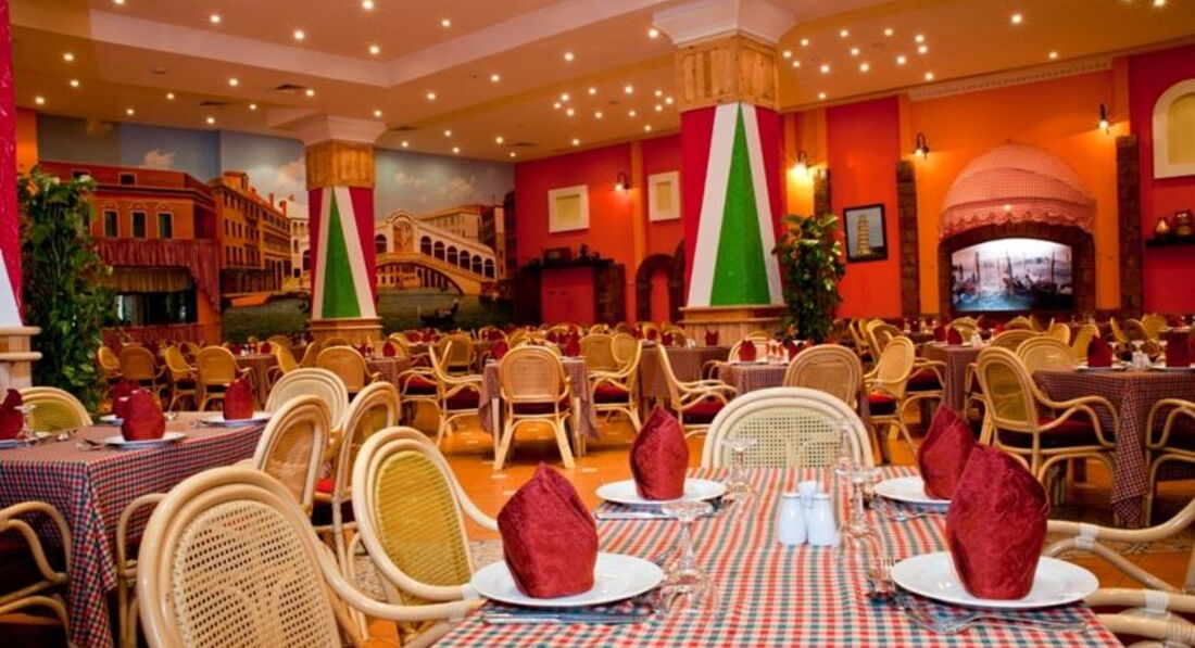 Morgana: італійський ресторан, пропонує сніданок, обід та вечерю. Zomoradah: Національний ресторан: пропонуються сніданок, вечеря з 18:00-20:00, пізня вечеря з 21:00-24:00. Бар біля басейну: години роботи: з 09:00-17:00; з 12:00-16:00 пропонуються легкі закуски, чаювання з 16:00-17:00; Бар на пляжі: відкритий з 09:00 до 18:00, з 12:00 до 16:00 легкі закуски; Лобі бар: години роботи з 9:00-00:30, з 16:00-17:00 кава та випічка; Платно: Moorish Cafe: кальянна, години роботи з 17:00-01:00. Ali Baba Lounge: годинник роботи з 18:00-01:00. Диско-бар: з 21:00-01:00 (в зимовий період). Vitamine Bar.