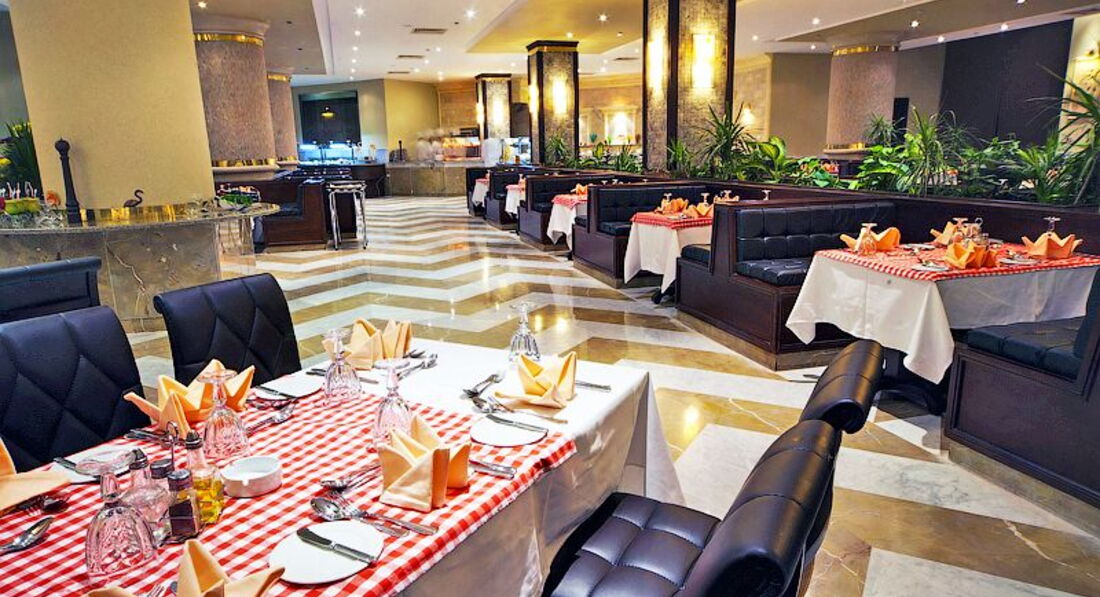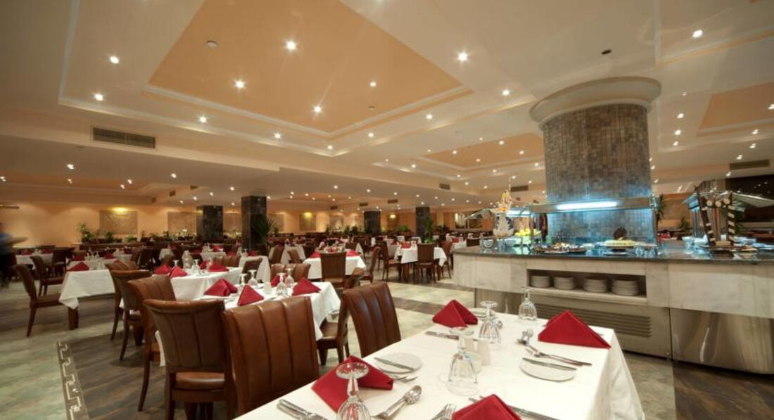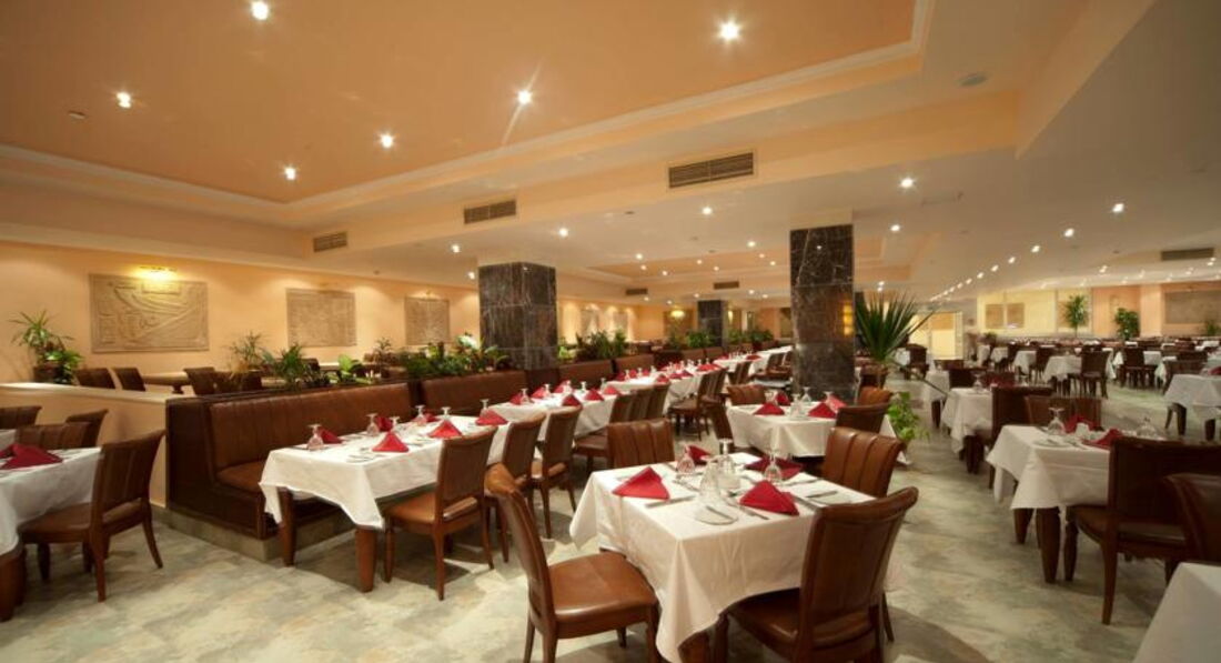 головний ресторан розрахований на 350 осіб (критий, з кондиціонером, дитячі стільці), бар біля басейну (10:00-17:00), лобі-бар (10:00-02:00), паб (18:00-01: 00). Ресторан "A la Carte": рибний - платно, за попередньою резервацією.
