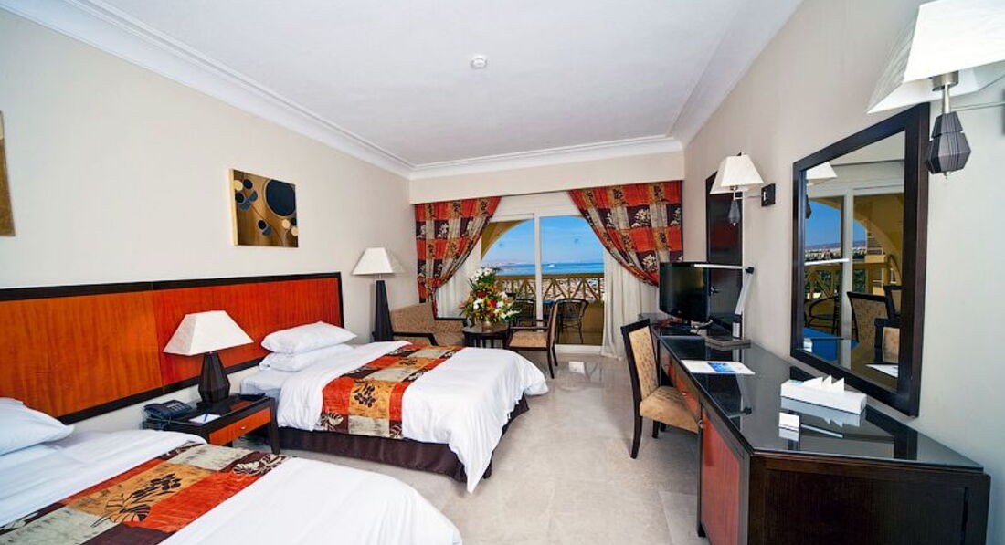 В Хургаде 5-ый раз. В этом отеле первый. При приезде не заставили долго ждать размещения,номер очень понравился. Сервис тоже на уровне, каждый день убирали, меняли постельное белье и пополняли мини бар. Кухня разнообразная, но в сравнении с другими отелями 5* немного скудноватая. Хотелось бы побольше разнообразных морепродуктов,так как это все же морской город. Анимация не очень, но, кто за чем едет тоже влияет. Любые вопросы решаются быстро, много рускоговорящего персонала. Очень понравилось,что отель находится не в самой Хургаде,это плюс лично для меня,нет навязчивых местных жителей. И еще, уважаемые туристы, будьте внимательны с таксистам, которые работают возле отеля. За свои множества прибывания в Хургаде, так попалась в первый раз. Они предлагают вас подвезти в город, подождать определенное время и завезти обратно в отель. Оплата якобы в конце. Но! при подъезде к отелю, вы отдаете им сумму, которой договаривались, при чем это происходит в полной темноте в машине, и, ловким движением руки он как-то меняет деньги и показывает, что вы ему дали совсем не ту сумму, будто бы ошиблись, и тем самым вы отдаете ему эту же сумму еще раз. Вот такие дела. А отдых супер. Если буду в Хургаде, обязательно остановлюсь здесь еще раз. Спасибо администрации отеля.