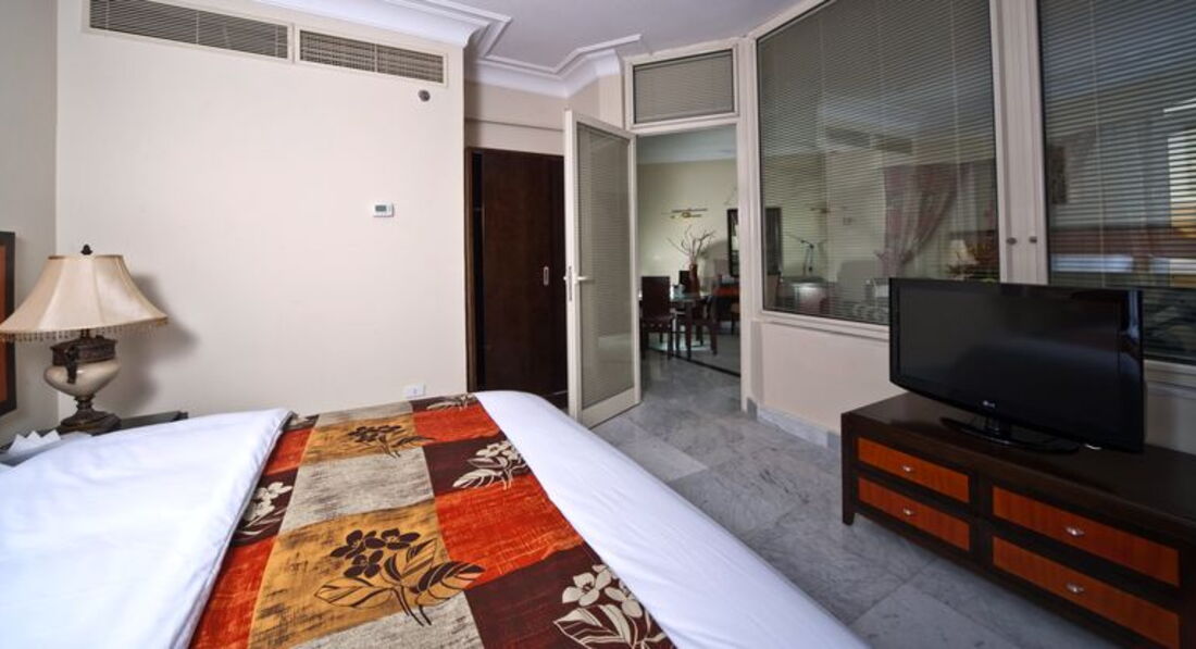 Номер очень красивый, но кругом одни недостатки, убираются редко, полотенца и пастельное белье меняли не ежедневно. В номере кругом строительная пыль, ванная комната грязная. Днем в соседних номерах ведутся строительные работы. Ночью жрут комары. Несколько раз в день отключают свет и вечером нет горячей воды.