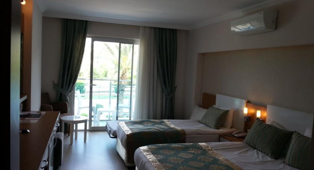 Мне ОЧЕНЬ понравился отдых в этом отеле,сезон только начался.Отдыхали в основном русские ,немцы,англичане,турки и др.Территория не большая но очень ухоженная и компактная.На ресепшен встретили милые Maria(русскоговорящая) и Yildiz,в течение 5 минут я получила ключи от номера на 4 этаже с видом на море-ШИКАРНО!Каждой женщине подарили гвоздику,bellboys Ferhat любезно доставил чемоданы до номера(бесплатно).В номере все исправно,чистота, единственное в пульте ТВ не было батарейки,я сообщила Maria на ресепшен,через 20 минут батарейку установили,больше не было проблем за время отдыха,у меня длинные волосы и фен работал исправно,без остановок.Ежедневно: уборка,смена полотенец ,пополнение напитков(бесплатных) в холодильнике.В ресторане вкусная,
