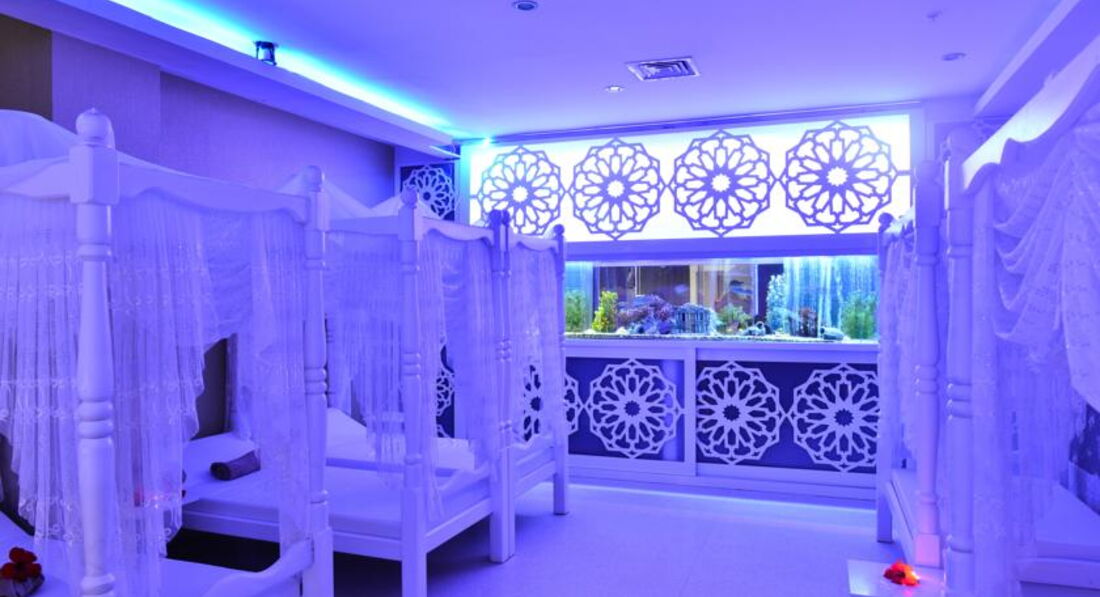 Jedinstvennoje cto razochiarovalo eto SPA - my v Turcii 6 raz i vsegda nachinajem otdyx s hamam - sdes on byl samyj dorogoj (30 eur) i samyj levyj :( razocharovanije proceduroj i ciustvo "konveera" popravil tolko zakluchitelnyj masaz - jego paren sdelal prekrasno, no vladelec spa prosto obmanshik, obeshcial sdelat hamam vneste rebionku - no otmazalsia tolko 5 minutnym masazom s peny, takoje vpechiatlenije, chto dla nego samoje vaznoje sodrat lubym sposobom s klienta dengi - a udovolstvije i uvazenije k klientam ne shitajetsa.