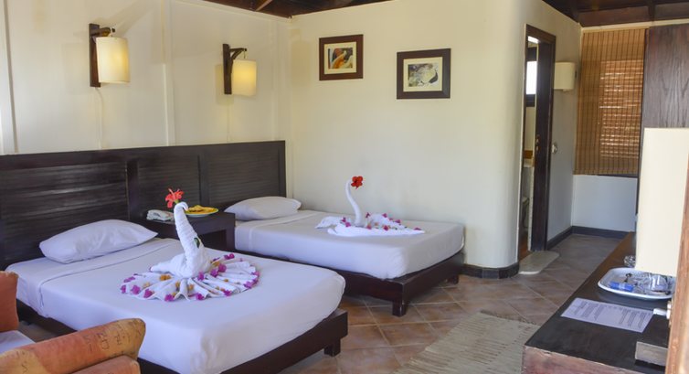 Мы отдыхали с 25.04 по 06.05, отель был заселен на 30% русскими и итальянцами пополам. Состоит из бунгало по 2-4 номера в каждом. Между номерами тонкие перегородки из гипсокартона, так что слышно, как соседи чихают. Интерьер в скромном дачном варианте, кондиционер в каждом номере свой, работает от пульта (+), кровати не скрипят, жить можно.