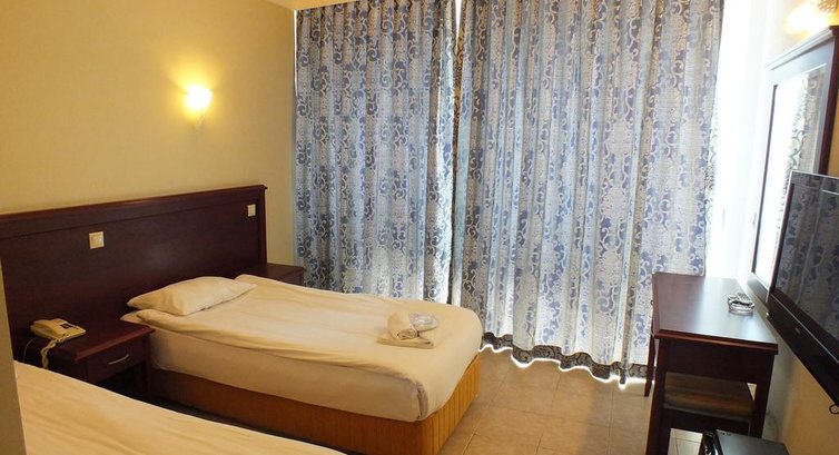 Отель так себе , питание слабенькое и весьма специфичное . Не смотря на сезон , фруктов практически не было , сливы и яблоки . Хотя обслуживание ребят в столовой на высоте , бегают .. суетятся. В номерах пахнет сыростью , окно открыть невозможно , т.к. рядом дорога с интенсивным движением , очень шумно .В столовой летают мухи и не очень чисто , дня через три прибывания в отеле питались уже в другом месте .Пляж, который принадлежит отелю грязный , шезлонги и зонтики в основном сломаны, но зато бесплатны! :) Ну вообщем отель тянет на заявленную троечку .