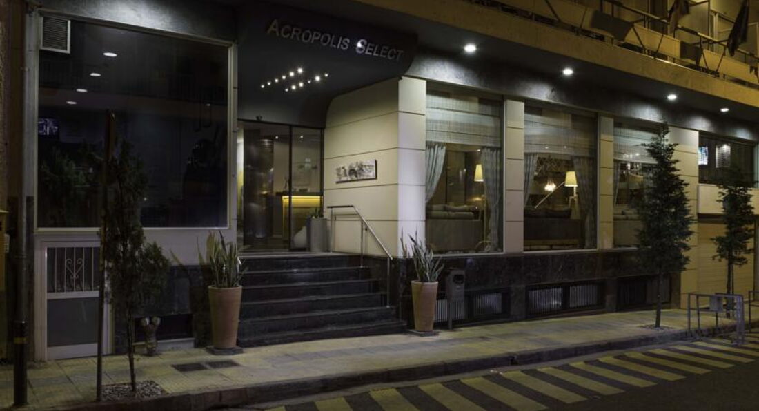 Acropolis Select розташований у тихому районі, поряд з галереями, пам'ятниками та музеями, в історичній частині Афін. У пішій доступності основні визначні пам'ятки міста – Ерехтейон, Новий музей Акрополя та Парфенон. Готель є прикладом архітектури у сучасному стилі Афін. Приємно оформлений номерний фонд. До послуг гостей відкрита тераса із шезлонгами. За 5 хвилин ходьби станція метро. Завдяки зручному розташуванню готелю дорога на автомобілі до аеропорту "Елефтеріос Венізелос" займе всього 20 хвилин. Рекомендуємо для самостійних мандрівників.