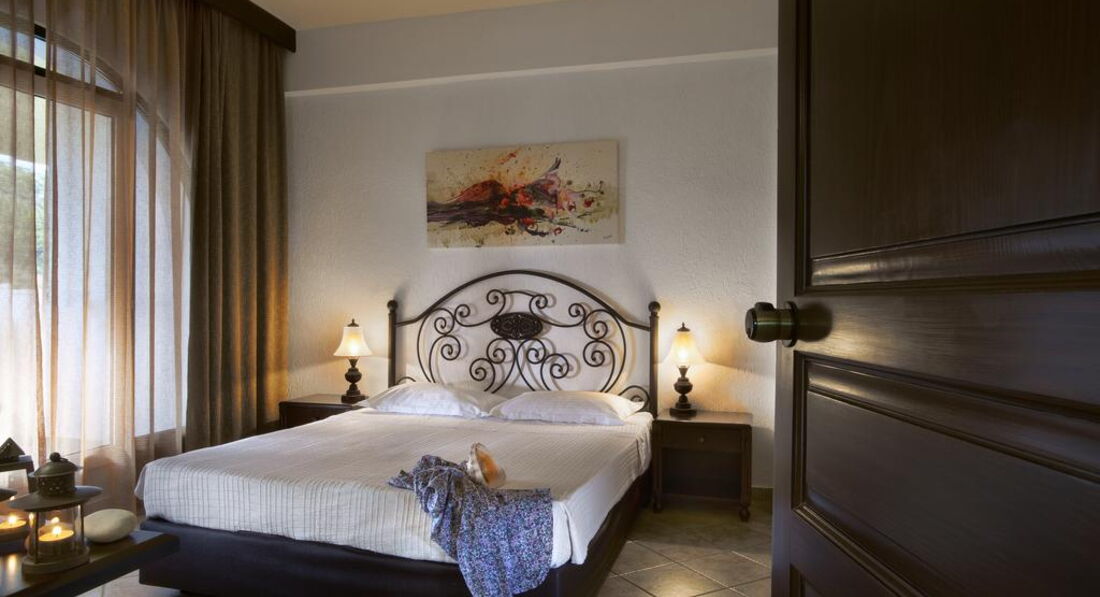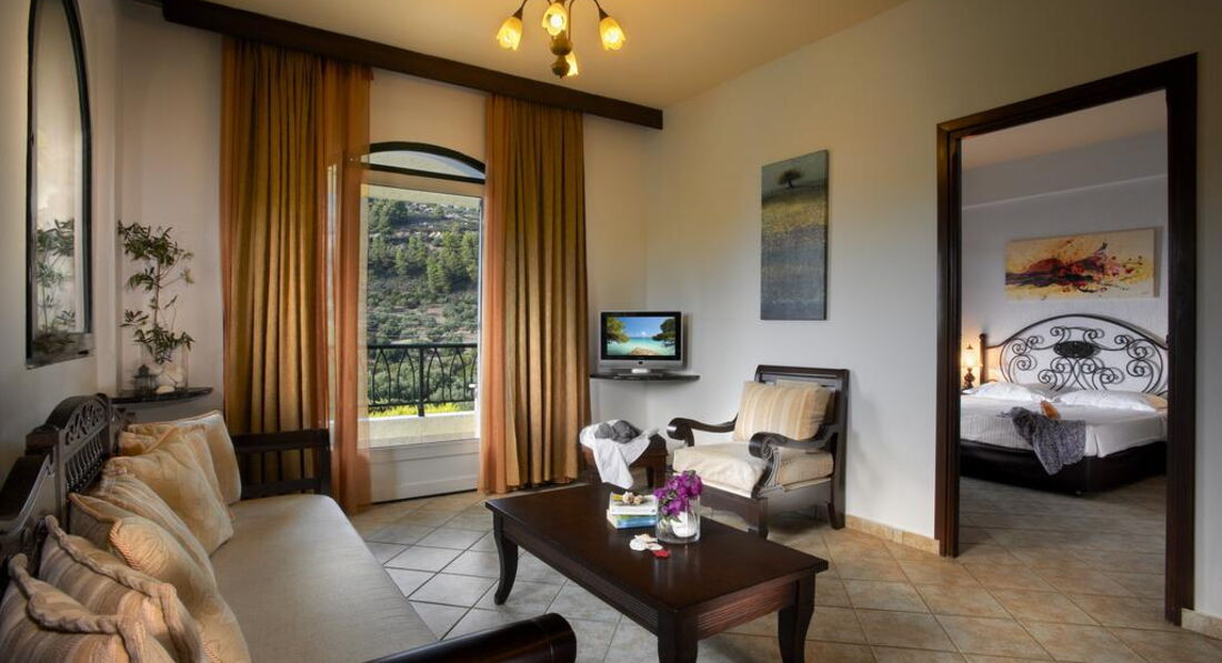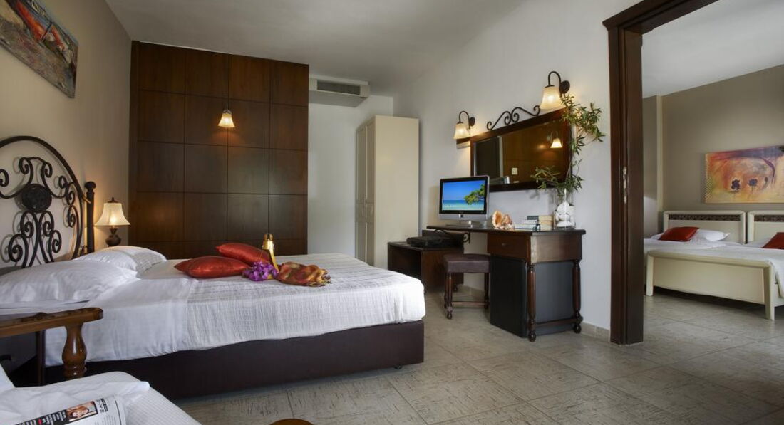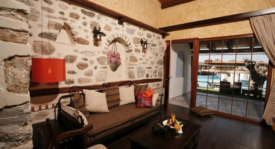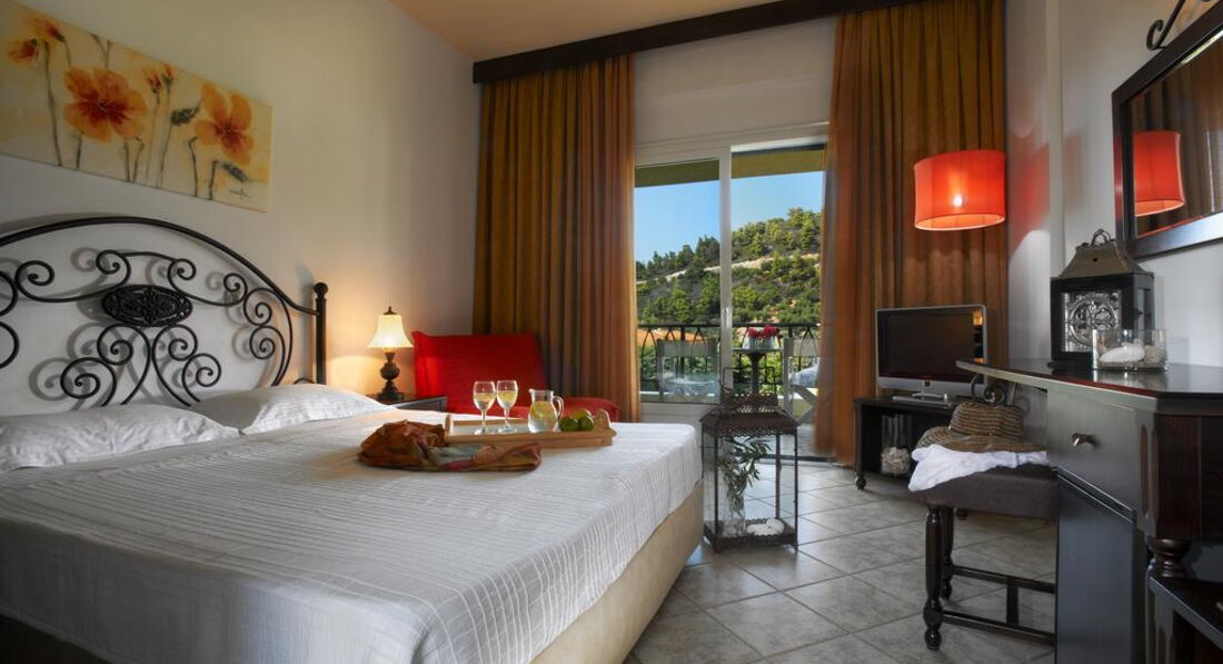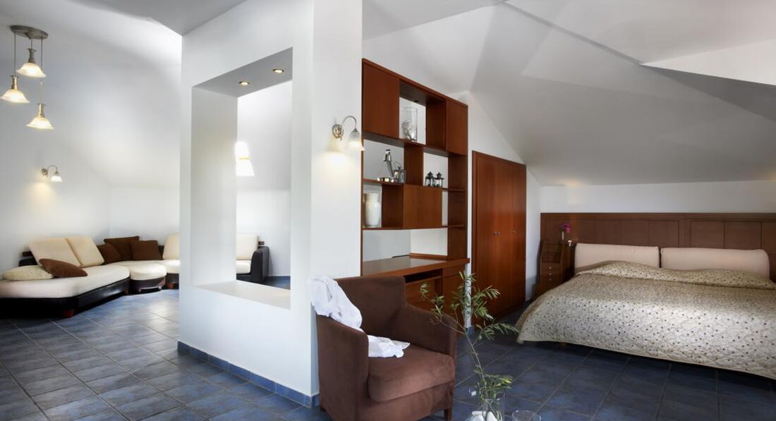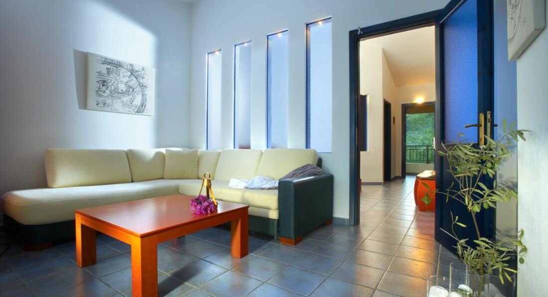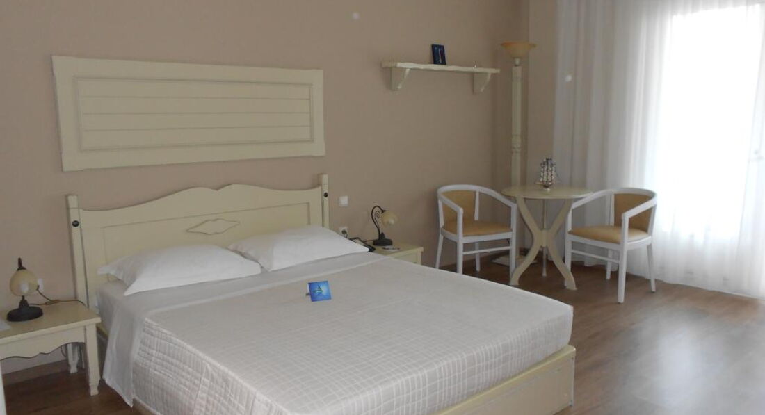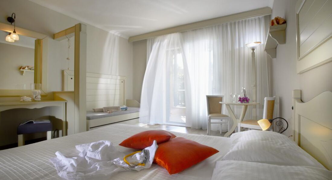 Типи номерів: standard room (осн.ліжко – двоспальне, дод. – софа, макс. 3 чол., 22 м2) superior room (реновані номери, спальня з двоспальним ліжком та зона для відпочинку з диваном, макс. 3+1 чол., 28 м2) armonia suite (спальня з двоспальним ліжком, окрема вітальня з диваном, макс. 3+1 чол., 38 м2) executive suite (номер відкритого плану, осн. ліжко - двоспальне, дод. - ліжко - софа, ванна кімната з джакузі, макс. 4+1 чол., 52 м2) family suite (2 окремі спальні, осн.ліжко – 2 односпальні, дод. – 2 односпальні та розкладна, 2 ванні кімнати, макс. 4+1 чол., 50 м2) grand suite (спальня, окрема вітальня, осн.ліжко - двоспальне, дод. - софа та розкладне ліжко, ванна кімната з ванною або джакузі, простора веранда, макс. 4 чол., 40 м2) maisonette pool front/private pool (велика спальня з ліжком king-size та мезонін з двома одномісними ліжками, дод. ліжко - розкладне, вітальня з каміном, ванна кімната з джакузі, ексклюзивний доступ до басейну «Petrino» або індивідуальний басейн, крита веранда, макс.4+1 чол., 75 м2).У номері: сейф: у номері, безкоштовно набір для приготування чаю/кави (безкоштовно) зміна білизни: 3 рази на тиждень кондиціонер: центральний (з індивідуальним контролем, безкоштовно) кавоварка (безкоштовно, в maisonette) зміна рушників: щодня прибирання номера: щоденно телефон підлога: керамічна плитка (паркет (у superior, maisonette)) капці балкон або тераса фен: є ТБ: супутникове міні-бар платно Інтернет: Wi-Fi, безкоштовно халат ванна або душ