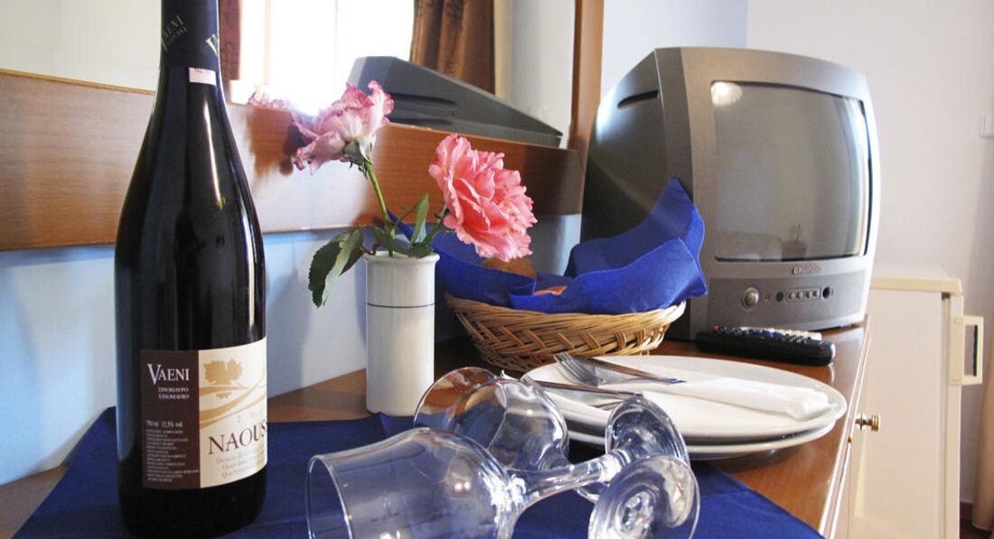 Типи номерів: Standard room (осн. ліжко - двоспальне або 2 односпальні, дод. - Розкладне ліжко, макс. 3 чол., 20 м2), Superior room (однокімнатний номер, осн. ліжко – двоспальне, дод. - односпальне ліжко, макс. 3 чол., 21 – 30 м2), Family standard (двокімнатний номер з розсувними дверима або без дверей, осн. ліжко – вбудоване двоспальне ліжко, дод. - 2 вбудовані односпальні ліжка, макс. 4 чол., 31 м2);У номері: сейф: в номері, платно зміна білизни: 3 рази на тиждень кондиціонер: центральний (безкоштовно) холодильник зміна рушників: 3 рази на тиждень телефон підлога: керамічна плитка (або ламінат) прибирання номера: щоденно фен: є балкон або тераса ТБ: супутникове душ Інтернет: Wi-Fi, безкоштовно