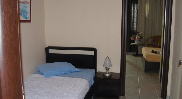 Типи номерів: Superior room (двокімнатний номер без дверей, осн. ліжко – двоспальне або 2 односпальні, дод. - односпальне та розкладне ліжко, макс. 3 + 1 чол., 36 м2)У номері: сейф: у номері, безкоштовно зміна білизни: 3 рази на тиждень кондиціонер: індивідуальний безкоштовно холодильник зміна рушників: 3 рази на тиждень телефон підлога: керамічна плитка (або ламінат) прибирання номера: щоденно фен: є балкон або тераса ТБ: супутникове набір для приготування чаю/кави є душ Інтернет: Wi-Fi, безкоштовно