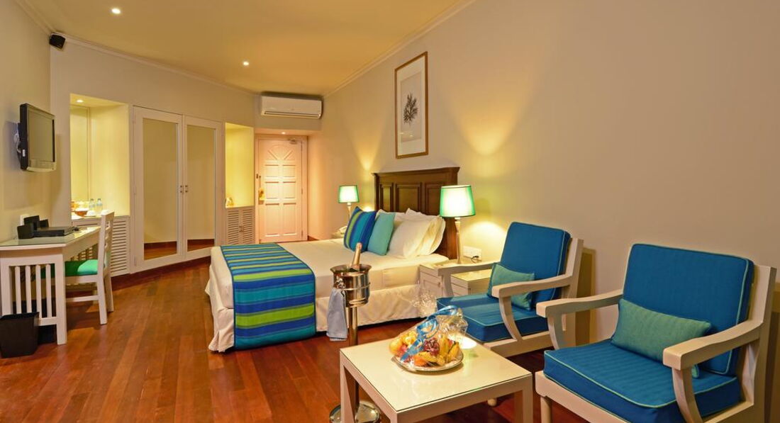 • ванна кімната (душ) • фен • індивідуальний кондиціонер • вентилятор • міні-бар (платно) • набір для приготування чаю та кави • ТБ • телефон (платно) • сейф • косметичні приналежності Територія та послуги: • центр рефлексотерапії (платно) • лежаки • магазини (платно) • послуги пральні (платно) • інтернет кафе • послуги портьє цілодобово • Wi-Fi у громадських зонах • ресторан (шведський стіл із тематичними вечорами) • 2 бари (з 08.00-00.00) • кав'ярня (08.00-00.00) • СПА-центр (платно) Розваги та спорт: • настільний теніс • Пляжний волейбол • Пляжний футбол • глибоководна риболовля (платно) • віндсерфінг (платно) • підводне плавання (платно) • скуба-дайвінг (платно) • джет-серфінг (платно) • водні лижі (платно) • дайвінг (платно) • анімація (італійською мовою) Для дітей: • дитячий майданчик • дитяче ліжечко: на запит • дитячі стільці в ресторані: за запитом Живлення: • HB – сніданок, вечеря • AI – все включено Пляж: • піщаний • домашній риф (хороший) До оплати приймаються кредитні картки: Master Card, Visa, American Express.