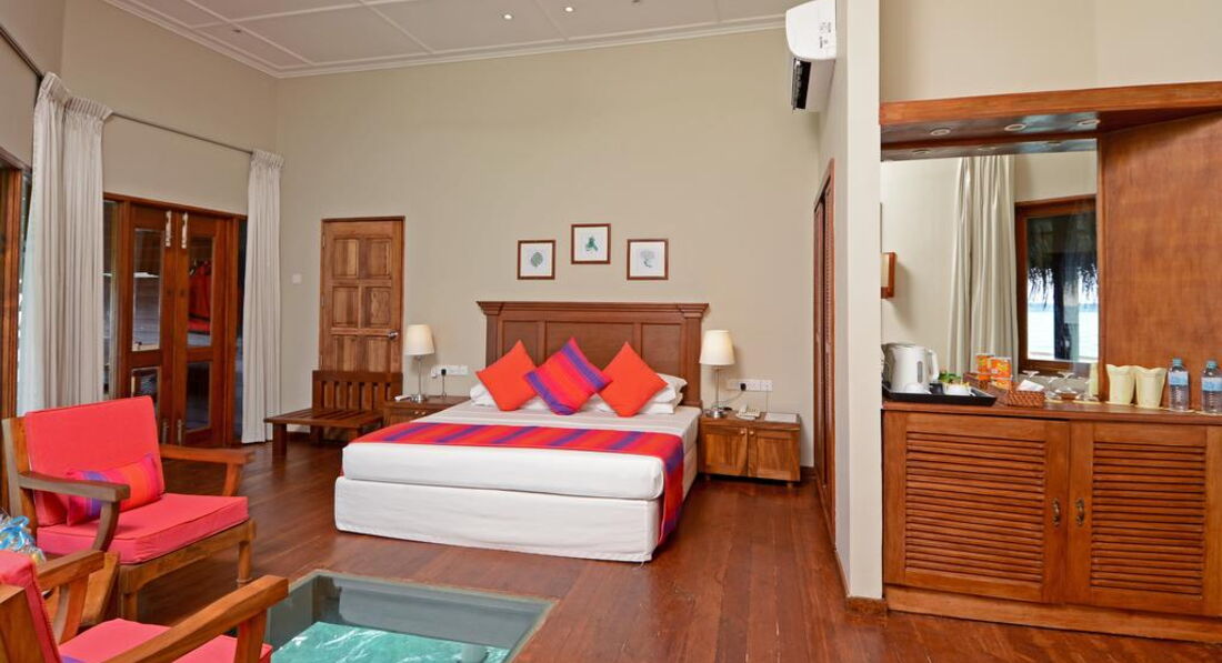 Типи номерів: 96 Standard Room (34 м2, макс. 3 чол.). Розташовані по периметру острова у двоповерхових корпусах на 4 номери. Ліжка king-size або twin. 34 Water Bungalow (69 м2, макс. 3 чол.). Водні вілли. Два двоповерхові блоки на 4 номери, решта одноповерхових блоків на 2 номери в кожному, є номери interconnecting. Ліжка king-size або twinУ номері: