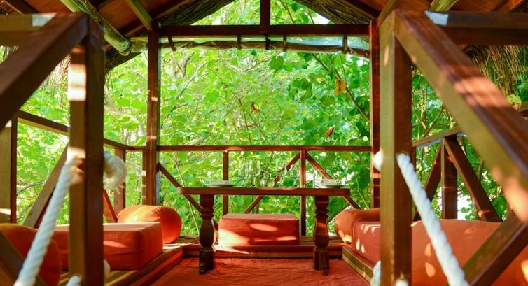 Что сказать про отель. Небольшой, бассейн маленький, ресторан всего один. Остров сам очень маленький, и большое засилие русских сограждан, признаюсь, несколько раздражало. Постоянно шуровал товарищ в желтой майке ТЕЗ ТУР, он был популярен у местных русских – они его постоянно спрашивали. Зачем он также нужен,я поняла тоже – сервис же в отеле шри-ланкийский, вот и работал представитель тур оператора ускорителем и проблеморазрешателем. Что такое шри-ланкийский менеджмент, мы поняли быстро. Они, местные тут, извините уж, мы не снобы, но все же, туповатые они. Работать не хотят. А если и работают – то не быстро. Проблемы решать не хотят. Их тут много, а толку от них от всех мало. Поначалу это раздражало, потом мы забили. Все-таки, отдыхать приехали. Номера тут все водные виллы. Это тоже меня прельстило при выборе отеля. Давно в такой пожить хотела. Веранда с небольшим бассейном – но зачем он нужен если рядом море? Плохо что нет спуска в море с веранды! Интернет в номере был проводной, беспроводного не было. Номер такой в японском что ли стиле, мне понравилось. Большая кровать, как для молодожен. Сейф бесплатный, это хорошо. Можно сделать в номере чай, кофе Нескафе. Бесплатная минералка.