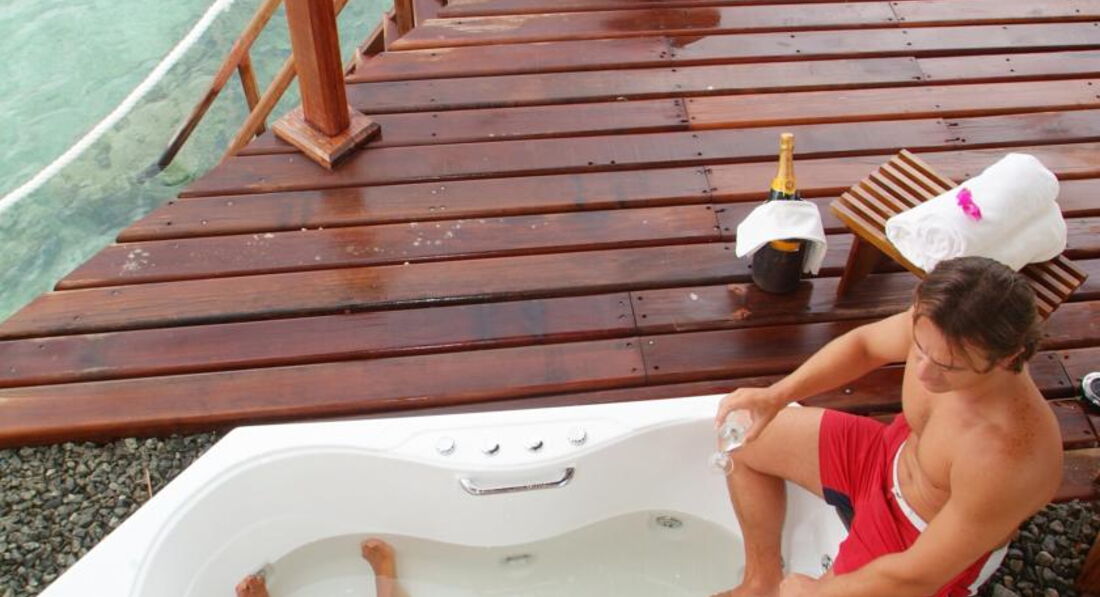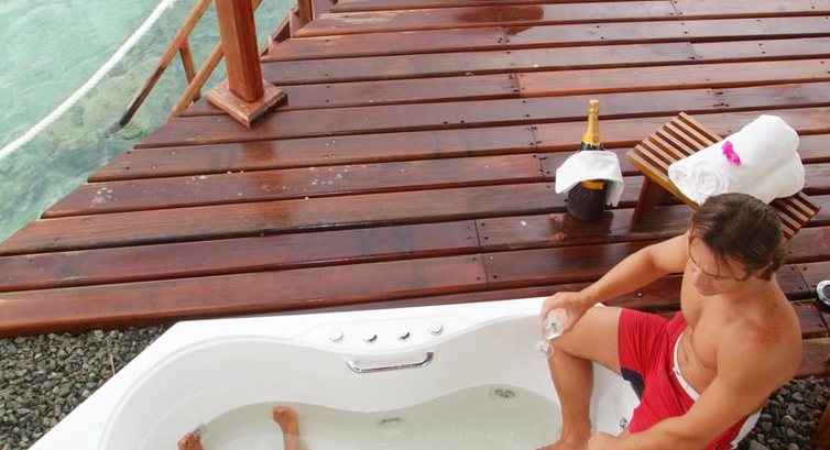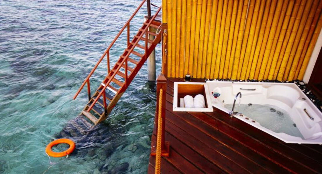 *Водні бунгало в блоках на два номери, тераса з джакузі, окремий вихід до води.