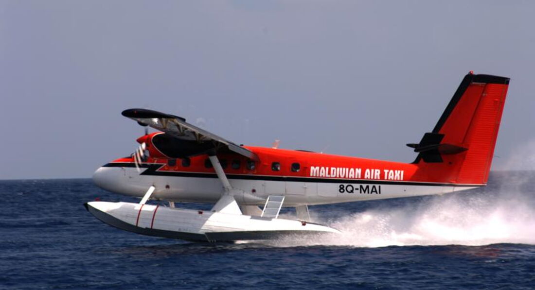 Полет до него от аэропорта на гидросамолете - 45 минут, постарайтесь занять место у иллюминатора, Вас ждут необычайно красивые виды с высоты птичьего полета - множество островов обитаемых и необитаемых, окруженных лазурными рифами.