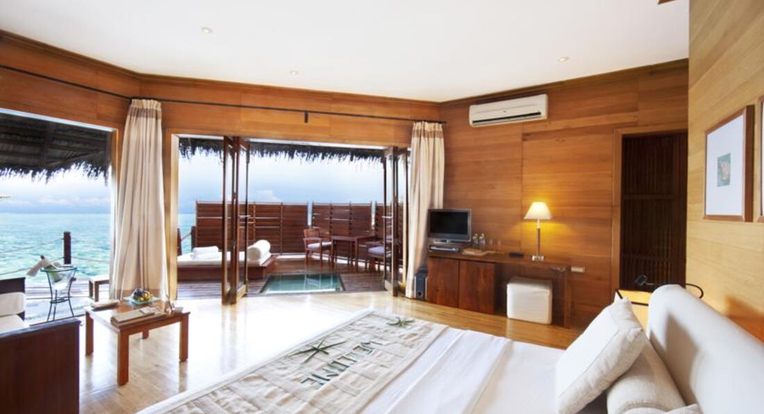 Отель полностью подходит для неспешного вкусного и комфортного отпуска (всего10 вилл в каждой по 2номера) По заезду вам дают комплименты от отеля (фрукты вино, одна экскурсия, спа, ужин на пляже) к Вам прикрепляют Личного батлера. Питание по меню (подача и качество продуктов отличное). Высокий уровень обслуживания. Уборка дважды в день во врем вашего отсутствие в номере. Завтрак можно заказывать в номер бесплатно (заранее). Соки подаются по системе все включено только свежевыжатые. Алкоголь импортный из бутылок (все качественно). Достойный спа центр за совершенно приемлемые деньги. Территория красивая зеленая (тропическая). Коралловый риф шикарный (обитателей много). с берега отличные белоснежные пляжи с мельчайшим песочком. В общем любой каприз выполнят по вашей просьбе.