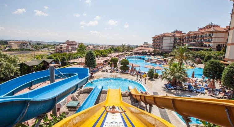 Летели АК Россия,брали конкретизацию рейса,туроператор Библиоглобус.Перелет без задержек.Номер нам достался в третьем корпусе,над ресепшен,вай фай ловил в номере,на бассейне.Бассейн большой,чистый.Горки детям быстро надоели,купались в бассейне и ходили на море,большой плюс,то что мороженое на бассейне было с 11 утра до 22-00.Питание хорошее,но мужу хотелось побольше видов мяса,в прошлом году были в другом отеле,там мясных блюд было побольше,а в целом питание хорошее,порадовало,что черешня была каждый день,почти на все приемы пищи.Порадовал морской ужин,где давали мидий,креветок,осьминогов и раков.На бассейне делают вкусную пиццу и дают вареную кукурузу.Из спиртных напитков вечером пили бейлиз.Анимация правда никакая,в детский клуб даже не пытались детей отправить.Пляж хороший,чистый,для меня был большой минус,то что пляж общий для трех отелей Адалии,очень много людей в море и для того,чтобы комфортно поплавать приходилось далеко заплывать.Еще дети и мы с удовольствием пили айран.Уборка в номере заключалась в том,что нам меняли полотенца и заправляли постель.В целом отель оставил очень приятные впечатления.