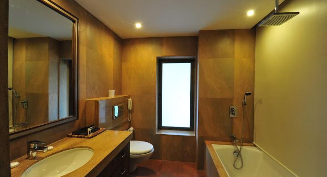 При заселение бросилось в глаза: лампы без плафонов, в ванной комнате розетки находятся прямо в душе, замазаны тяп-ляп шпаклевкой. Номер отремонтирован, но во всем чувствуется небрежность. (Сразу вспомнилась фраза:«Это Индия, детка!!!»)