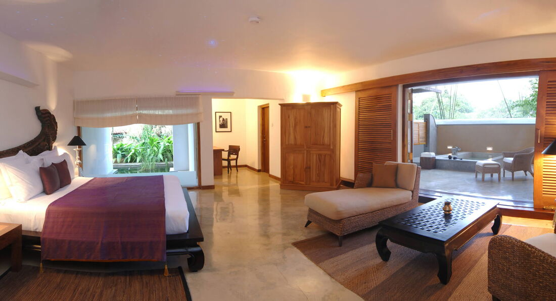 6 Shanthi Suite (51 м2, макс. 3 або 2+2 особи). Однокімнатні номери, розташовані на першому поверсі: зони спальні та вітальні; внутрішній дворик; вид саду.